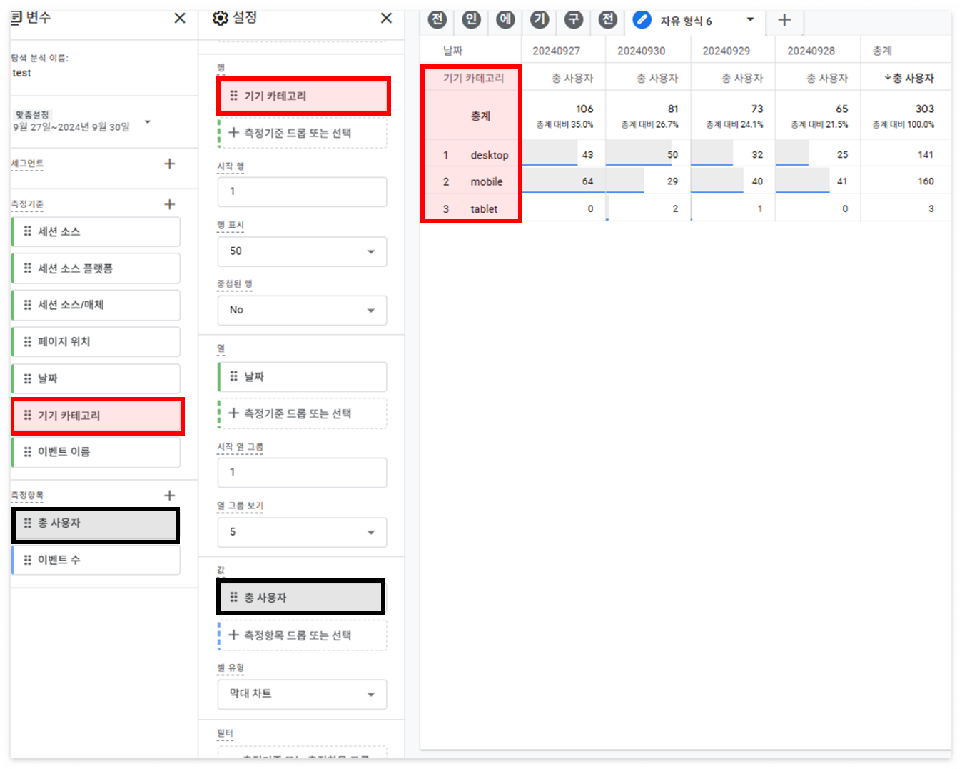 * 동일한 사용자 세그먼트를 생성하고난 후 기간을 어떻게 설정하느냐에 따라 같은 날짜라도 데이터가 달라짐