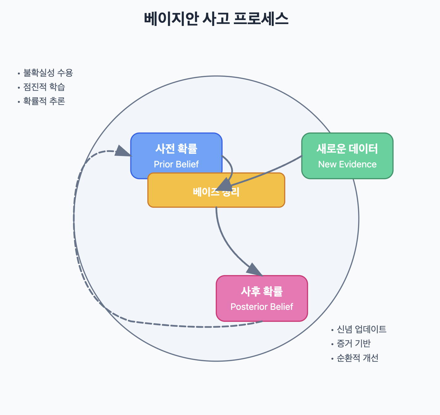 베이지안 추론은 관측 데이터를 바탕으로 우리가 가진 사전 지식(prior)을 업데이트해 사후 분포(posterior)를 계산하는 통계적 추론 방법이다. 이 방식은 단순히 “정답을 예측”하는 데 그치지 않고, 결과의 불확실성까지 함께 제공한다는 점에서 매우 강점을 가진다.